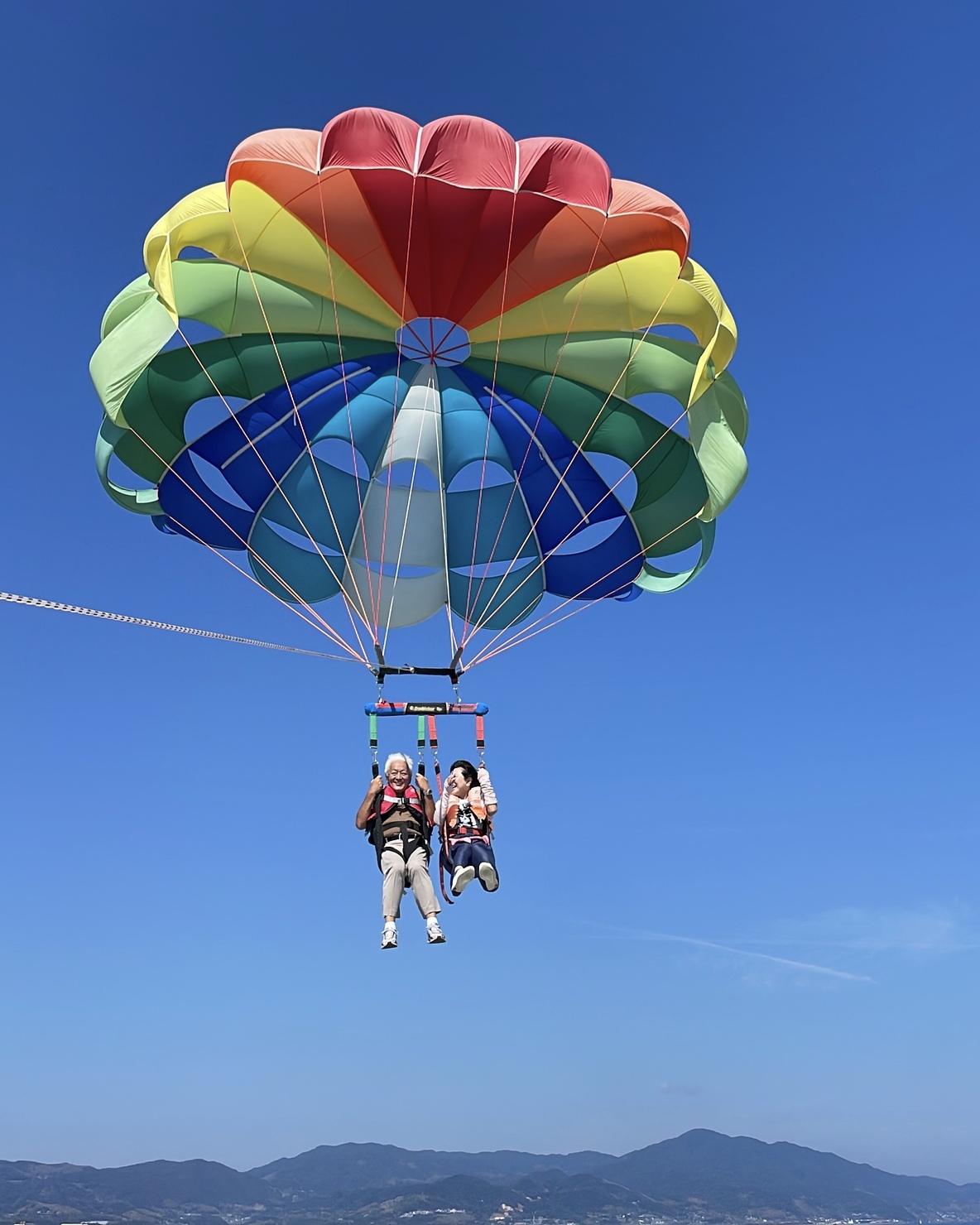 父の古希のお祝いの旅行先でパラセーリングを体験しました。母が景色そっちのけで父の笑顔を幸せそうに見つめていたのがとても印象的でした。思い出深い瞬間を選んでいただきとても嬉しく思います。ありがとうございます。