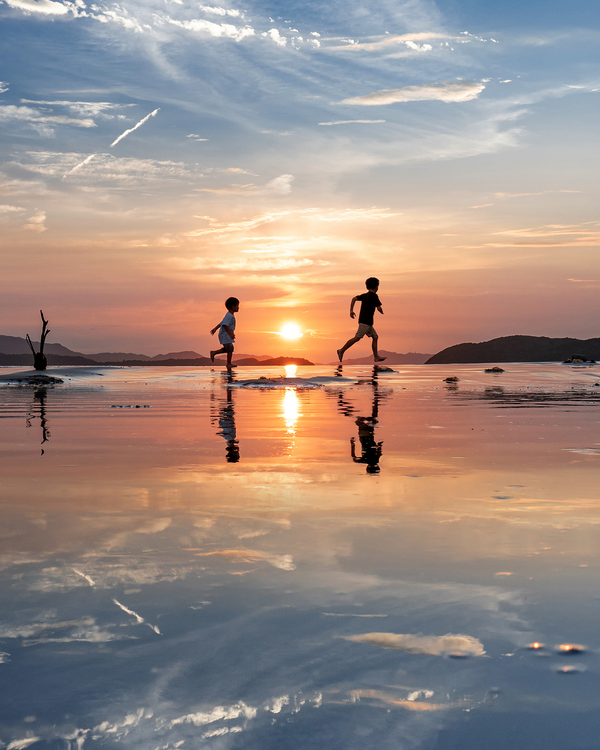 数年前の写真ですが、撮影中に何度もリテイクしていると、夕陽もどんどん沈んでしまい、まさに時間との勝負でした。子供達が(この頃は)素直に要求に応じてくれたおかげで、良い思い出を撮ることができました。素晴らしい賞を頂き、ありがとうございます。