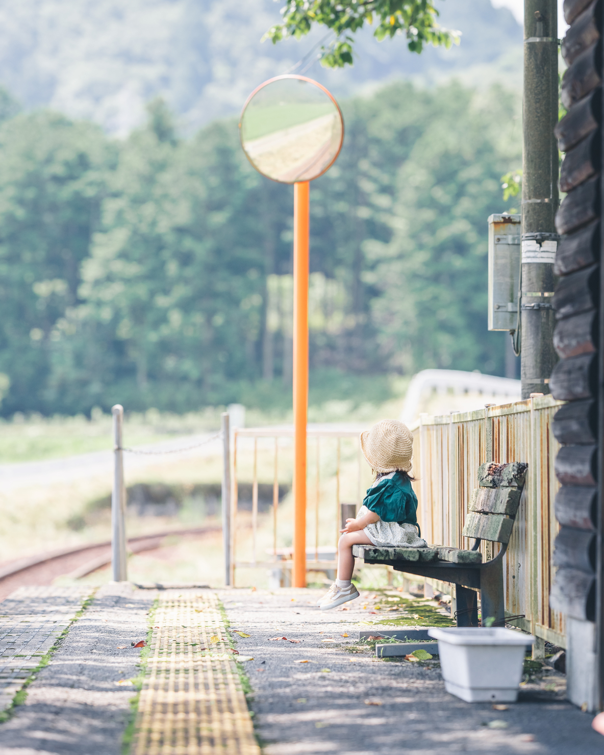 まだまだ来ない電車をいつ来るかなと待っていた娘。伸びた背筋、ちょこんと座る姿、届かない足、すべてが愛おしくシャッターを切りました。思い出深い写真を選んでいただき嬉しいです。
