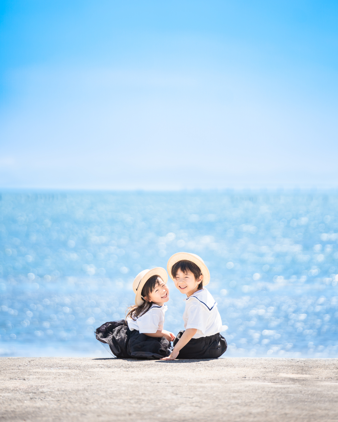 次男誕生から約1ヶ月後、お宮参りに行った時に撮影した1枚。風鈴の音や風の音、蝉の声など色々な夏の音色に浸りながらすやすやと眠る次男。撮影においても、レタッチにおいても、猛暑であったことを感じさせないよう涼し気な仕上がりにしてみました。